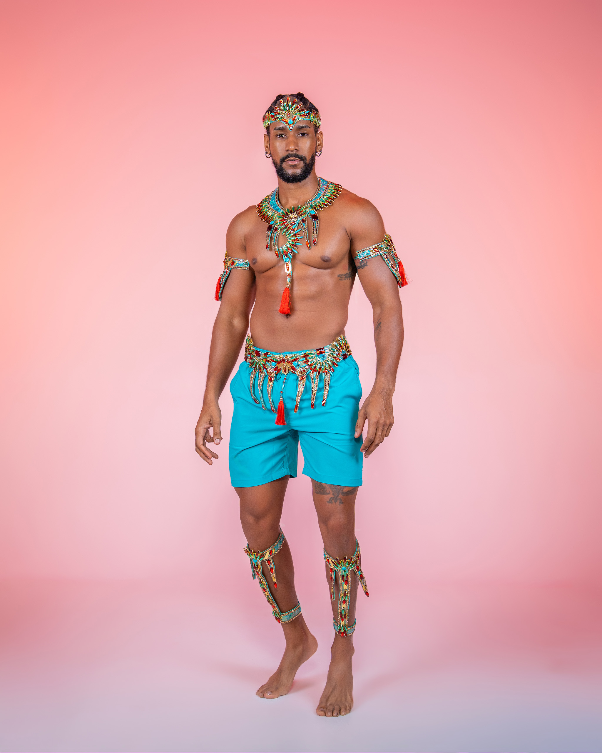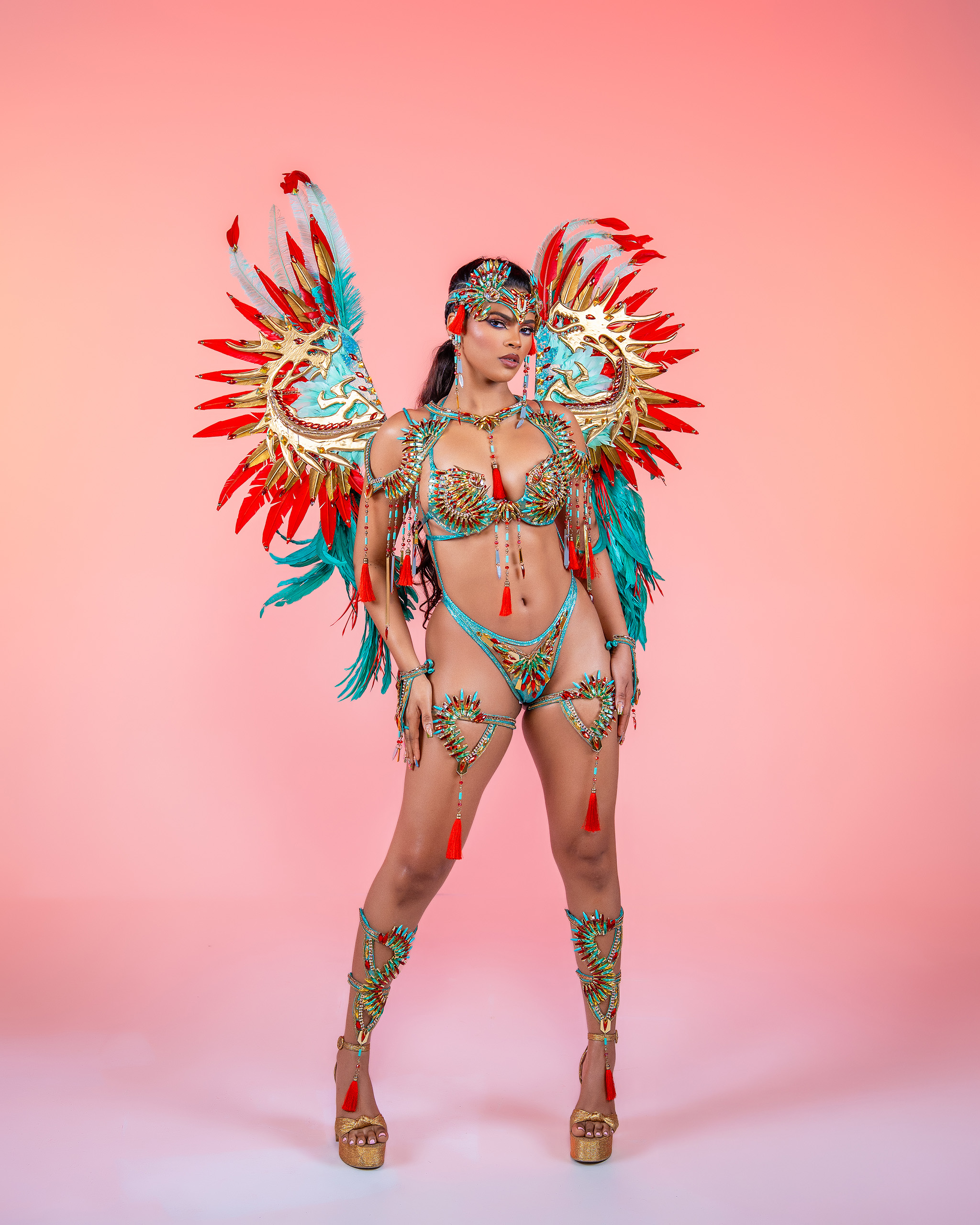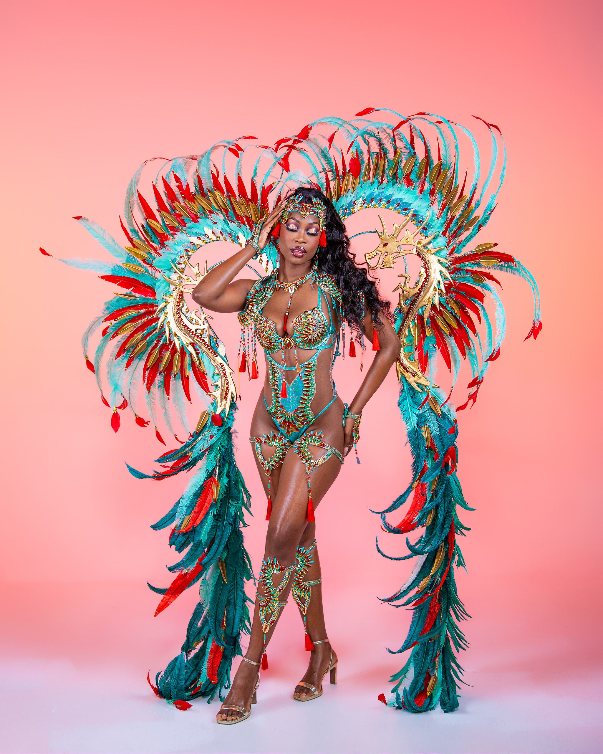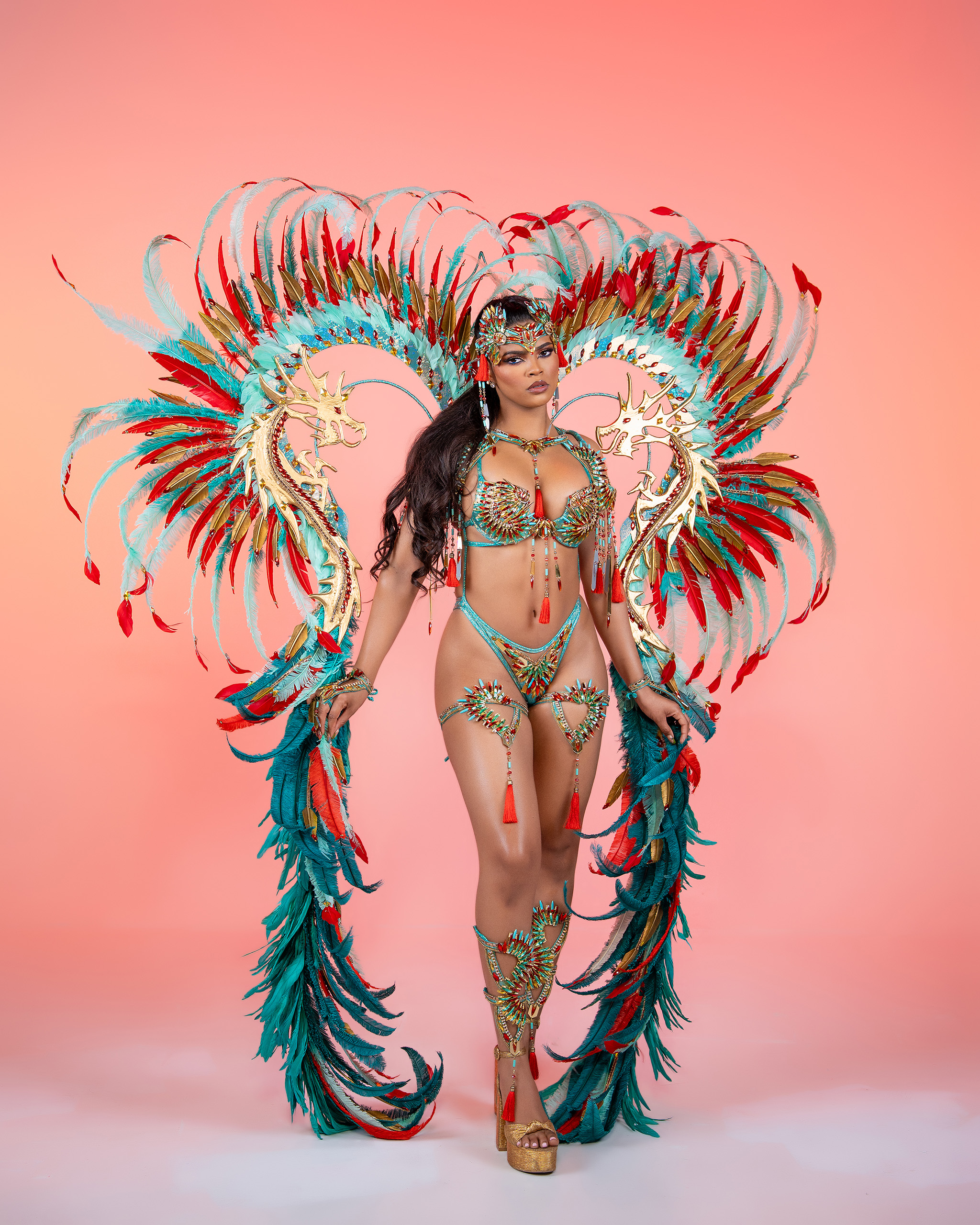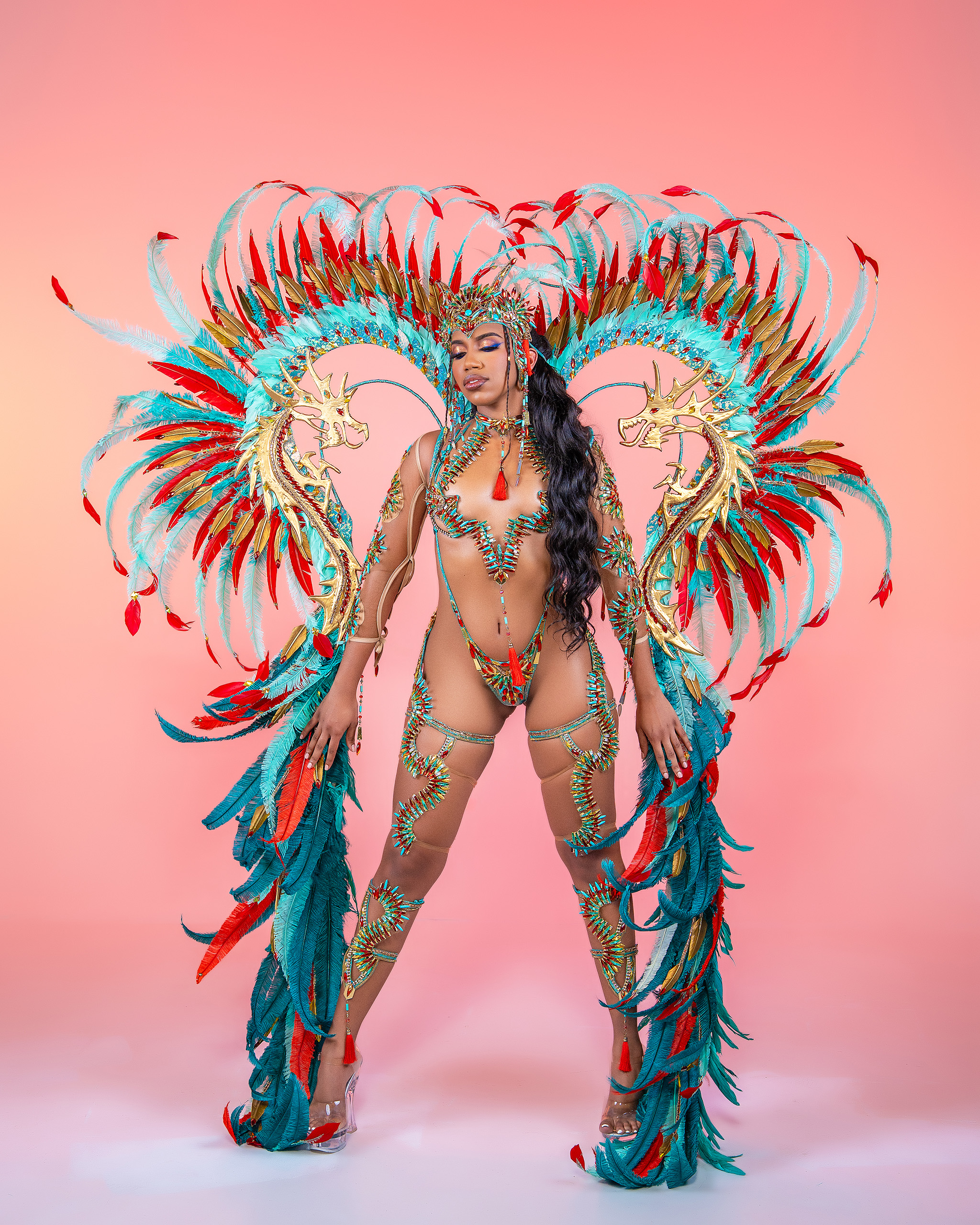 Born of reef and tide, rises Thalassa from the southern waters of Oistins. Inspired by fisherfolk, fishing boats, and the vibrant rhythm of the fish market, this dragon carries the Scales of the Abyss. It carries the rhythm of waves against hulls and the bassline of a riddim rolling across the bay. When Thalassa touches the road, it does not stomp, it surges. It is the ocean in masquerade form. Deep. Ancestral. Alive.